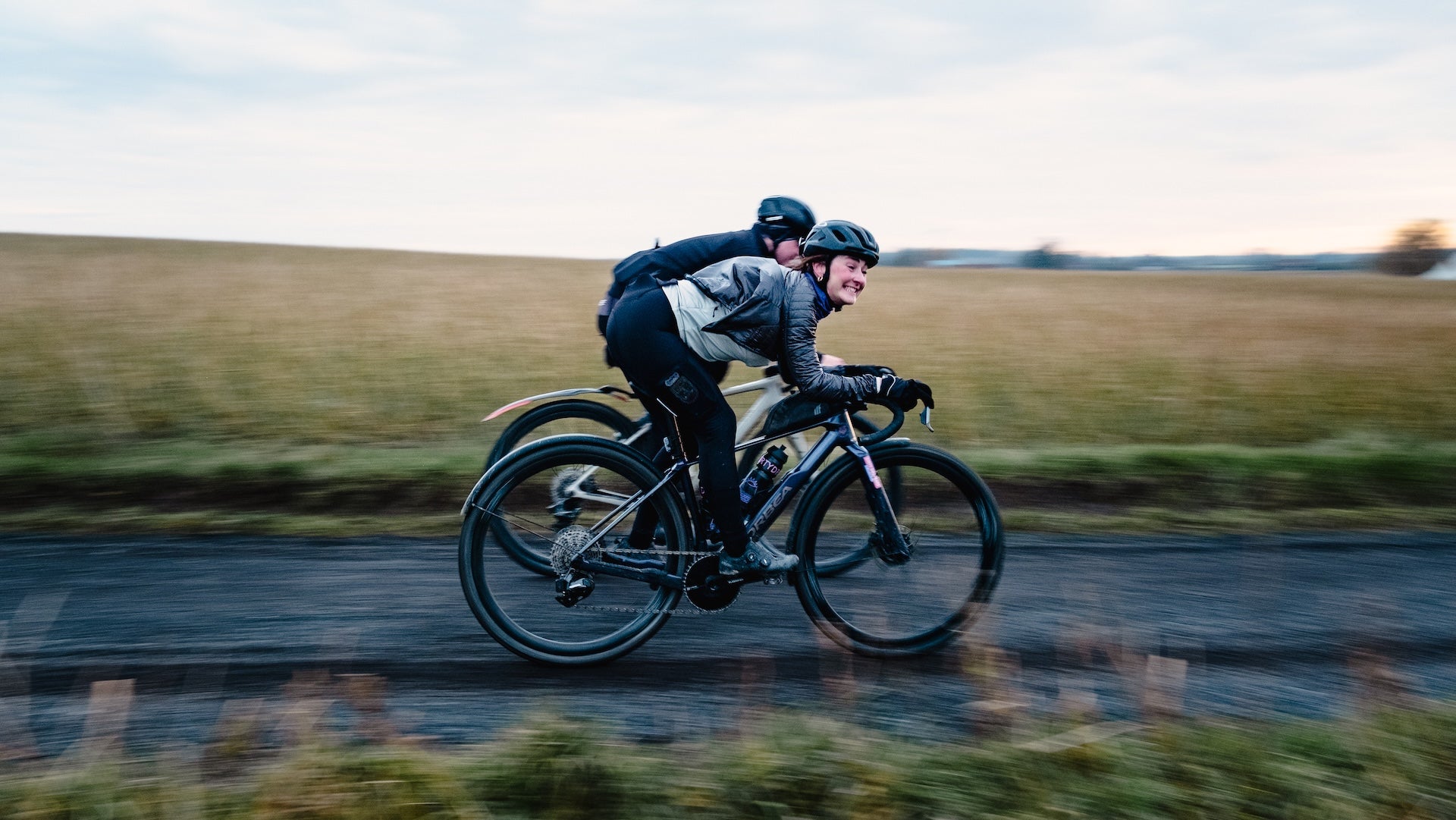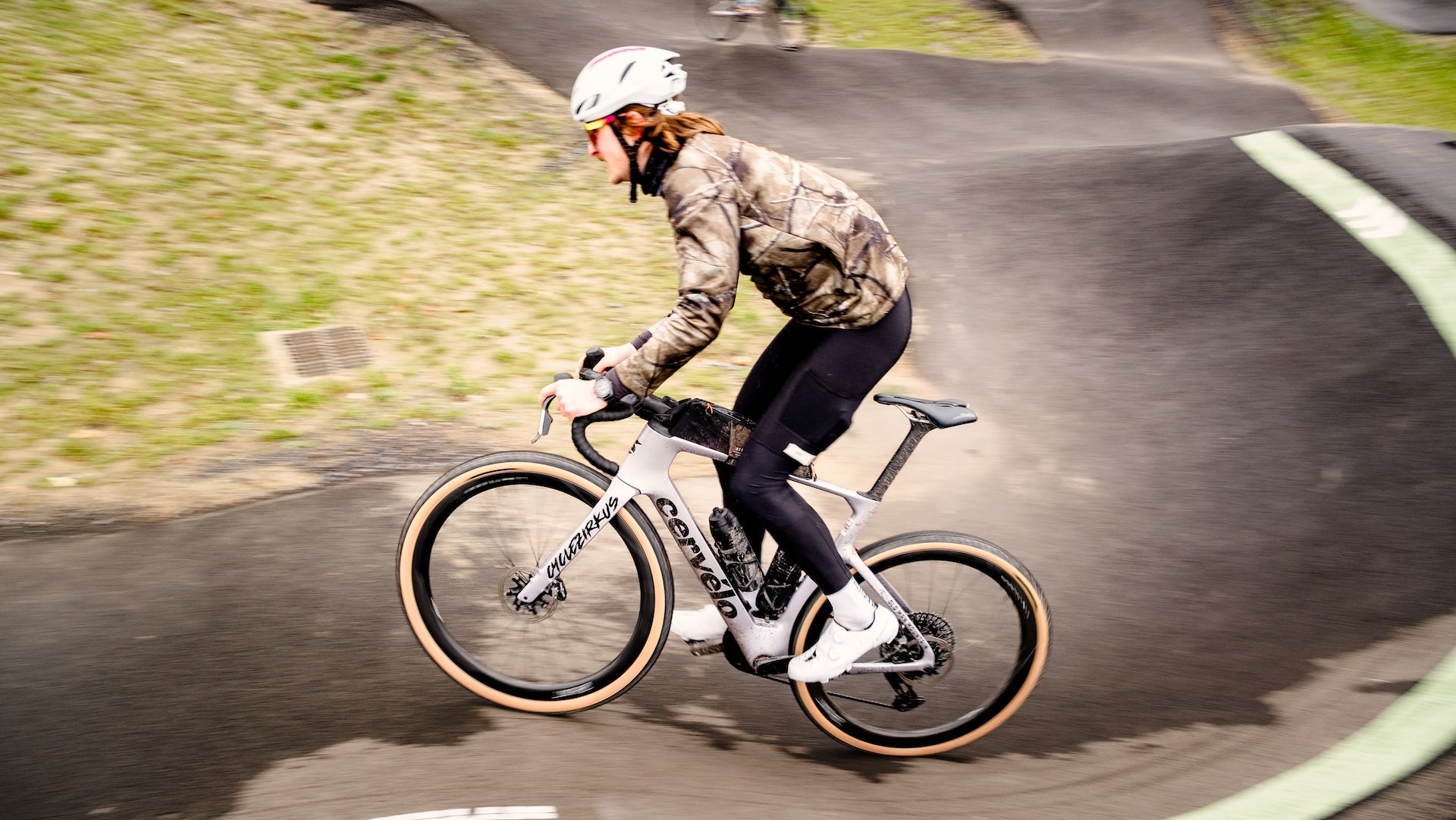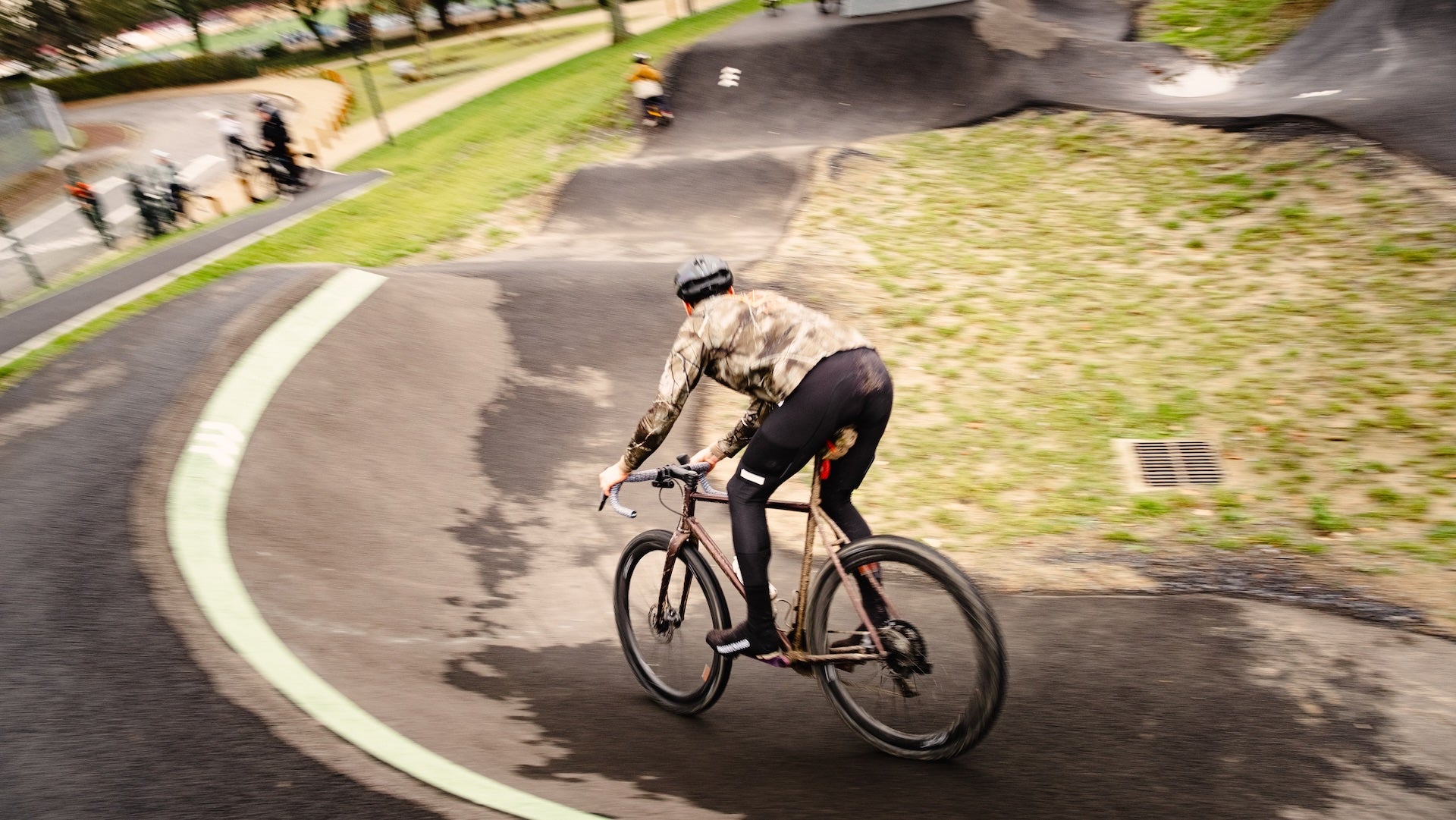 From there, playtime. A stop at a local pump track, where road and gravel bikes did a few unnecessary tricks, purely for fun. Laughter, small jumps, zero seriousness.